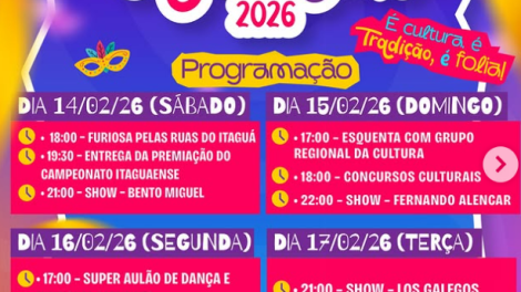 De 14 a 17 de fevereiro, prepare-se para viver momentos de alegria, música e valorização da nossa cultura, com atrações que vão do esquenta cultural...