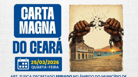 Conforme o DECRETO N° 12 - 24/03/2026, que dispõe sobre o feriado do dia 25 de março de 2026, em razão da Carta Magna do Estado do Ceará, informamos...