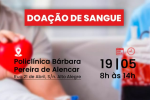A Policlínica Bárbara Pereira de Alencar, realizará no dia 19 de Maio, das 8h às 14h, a coleta de banco de sangue junto ao Hemoce.
