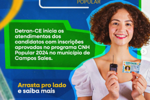 O Detran-CE deu início aos atendimentos do Programa CNH Popular 2024, que facilita a obtenção da primeira Carteira Nacional de Habilitação para pessoas de...