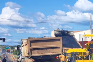 Imagens mostram o trabalho de restauração do asfalto da CE-371, dentro da cidade de Campos Sales.