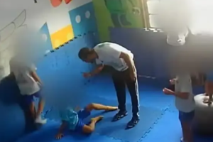 Na imagem, à qual a mãe só teve acesso durante uma audiência no final de março deste ano, 6 meses depois do ocorrido, é possível ver quando o menino tenta...