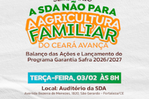 O Governo do Ceará, por meio da Secretaria do Desenvolvimento Agrário (SDA), realiza no próximo dia 3 de fevereiro, a partir das 15h, no auditório da SDA, o...