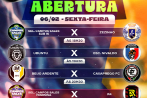 Teremos 3 grandes confrontos na abertura e, logo após, um amistoso de peso: Seleção Feminina de Campos Sales vs. R4. Vamos juntos vibrar e torcer pelo nosso...